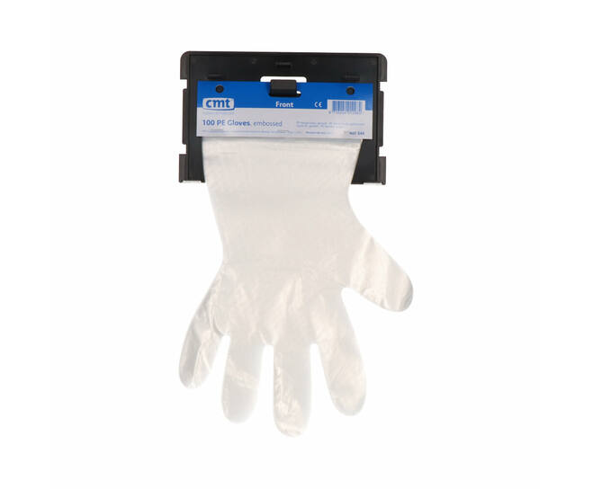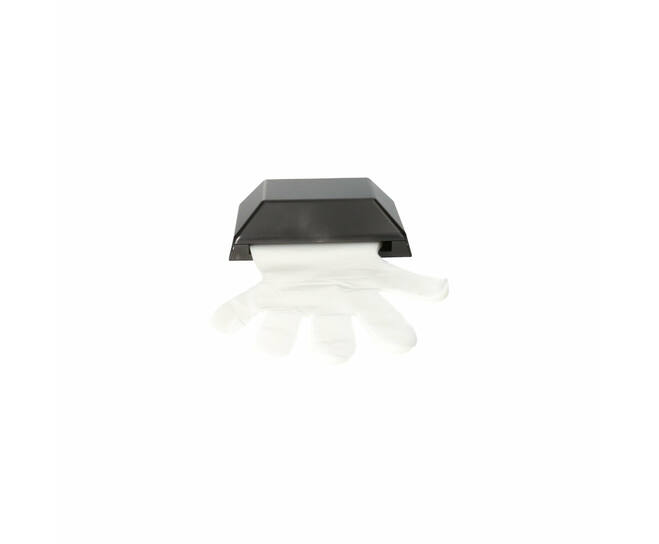 CMT kunststof wanddispenser, zwart model voor PE handschoenen op kaart
