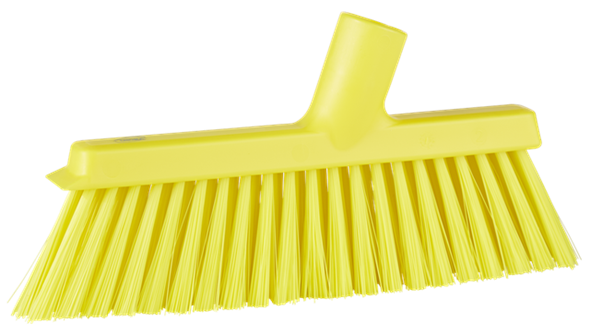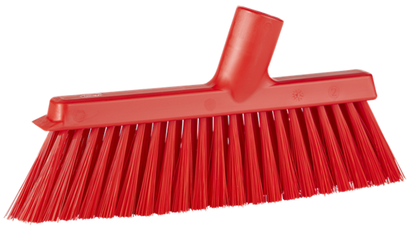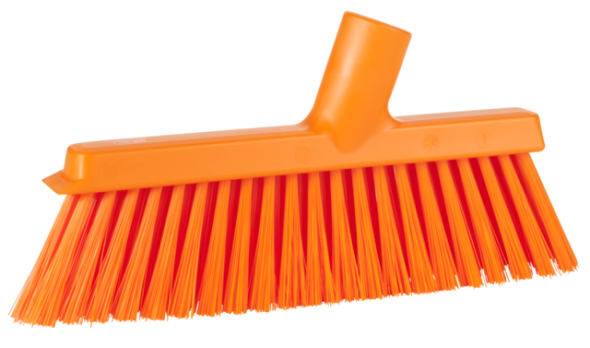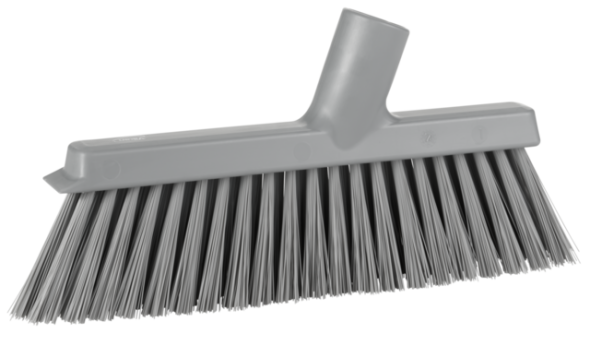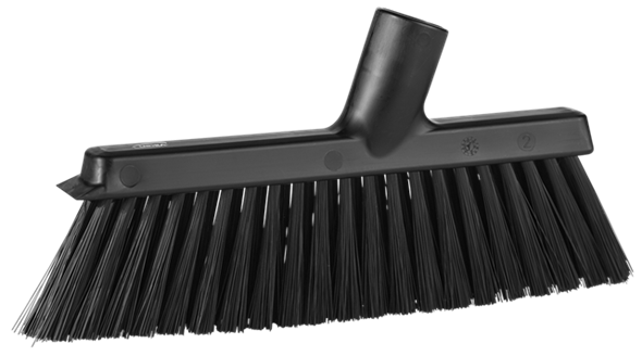 De Vikan stofferbezem (veger) met schroefdraad, 250 mm, medium, is een zeer effectieve, lichtgewicht bezem die zowel voor droog als nat vuil gebruikt kan worden. Het borstelpatroon is ontworpen met twee verschillende filamentdiameters. De buitenste rij filamenten is zachter dan de middelste rij, wat zorgt voor een zeer effectieve veegkwaliteit. De filamenten onder de schraaprand zijn schuin geplaatst om het vegen dicht bij muren en hoeken, evenals onder werkbanken en dergelijke, te vergemakkelijken. In het ontwerp is een effectieve schraaprand opgenomen om hardnekkig vuil van het oppervlak los te maken. Deze stofferbezem kan prima gecombineerd worden met een stofblik.